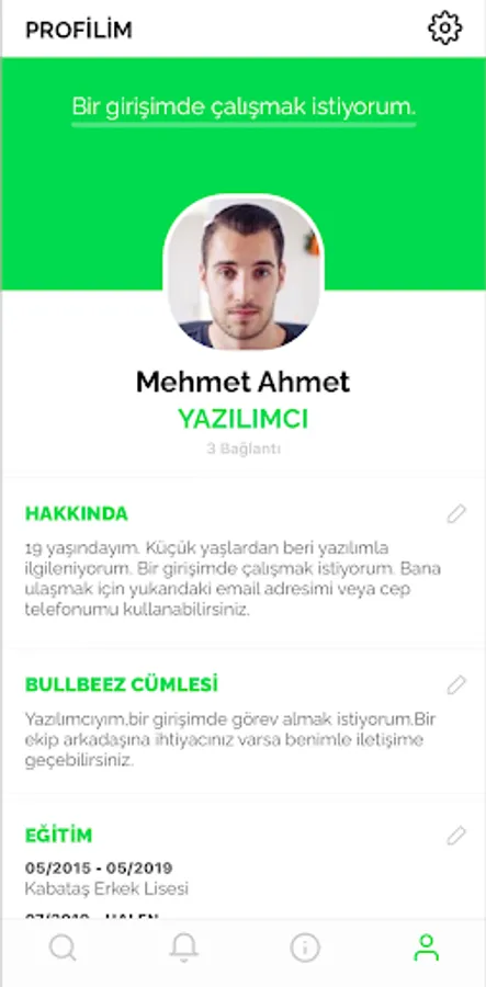 You can write about yourself, fill in your work and education experiences, indicate your interests, and find business partners that you can get the support you need. As a team that analyzes the needs of actors with feedback and acts on data, we aim to become a building block of the enterprise ecosystem.