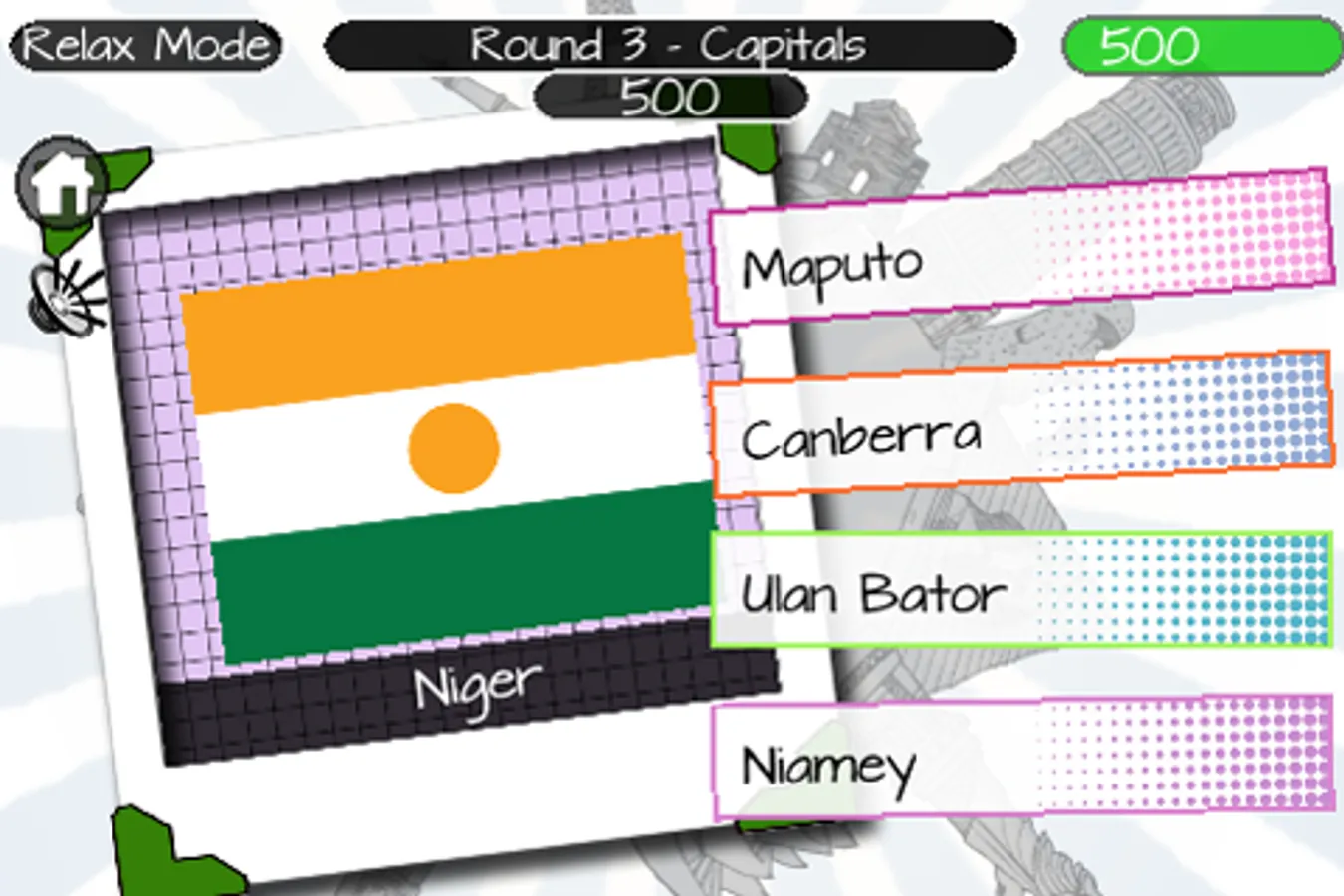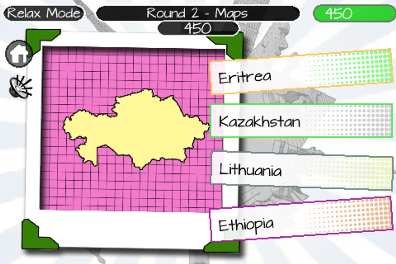 Relax mode - No time pressure, You can play each of the 8 rounds, Rounds are unlocked in Champion mode. In Relax mode you can take your time polishing and preparing for the Champion mode and eventually claiming geography supremacy.