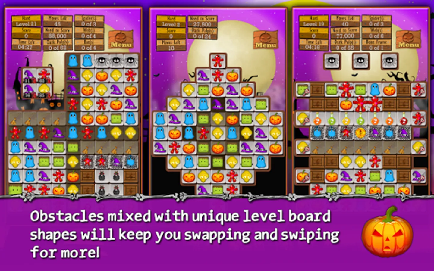 * Obstacles mixed with unique level board shapes will keep you swiping and matching for more.