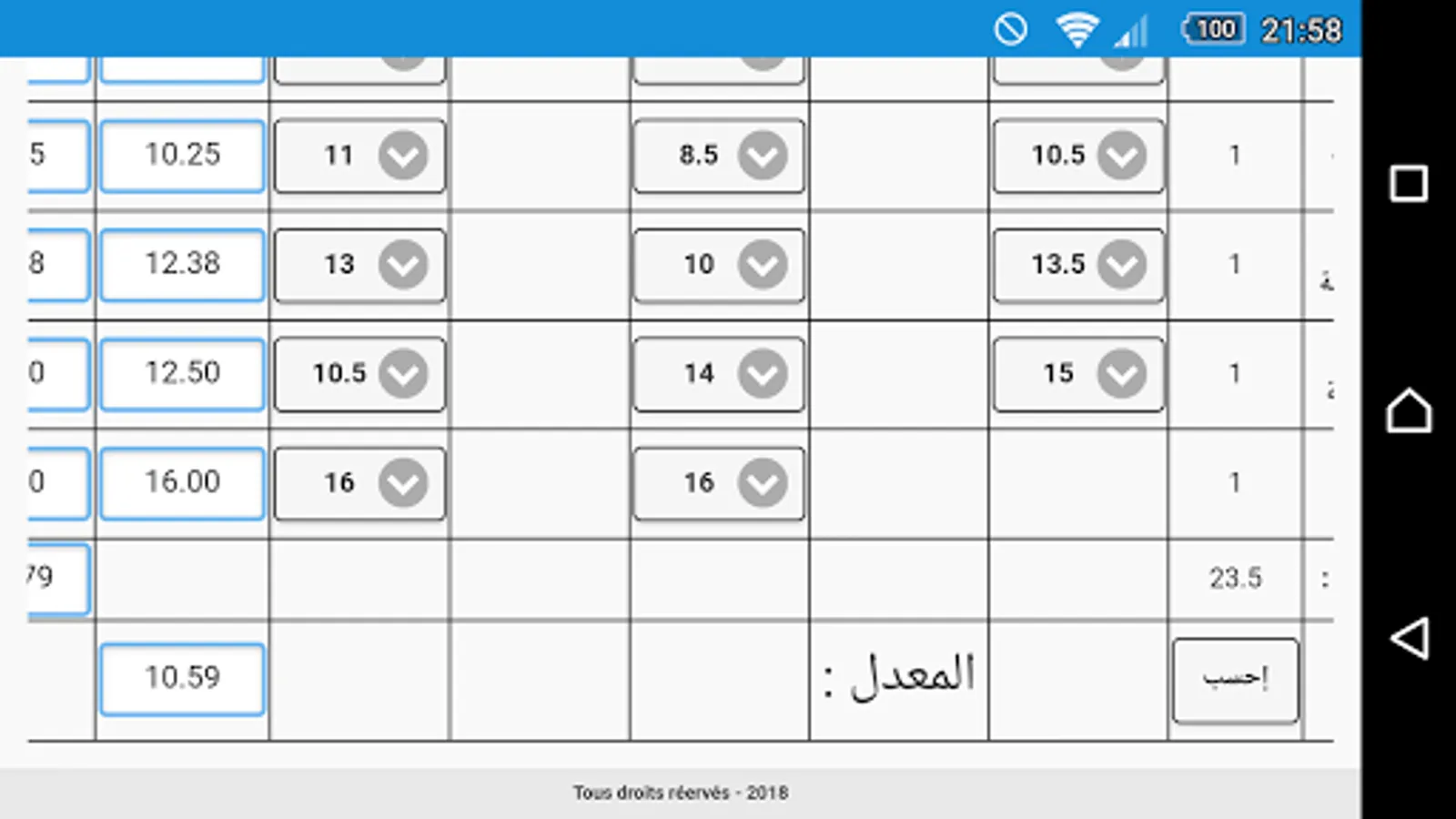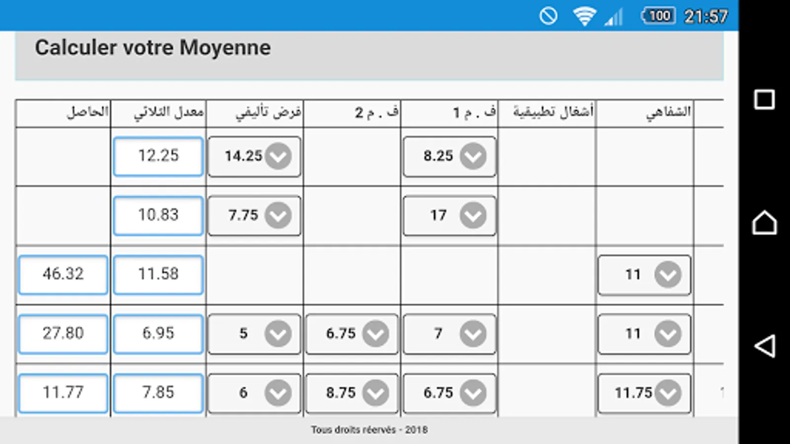This application is dedicated to all students, and for all who want to calculate the average school, it contains all the school newsletters, with arrays of materials and their coefficients. Good success to all.