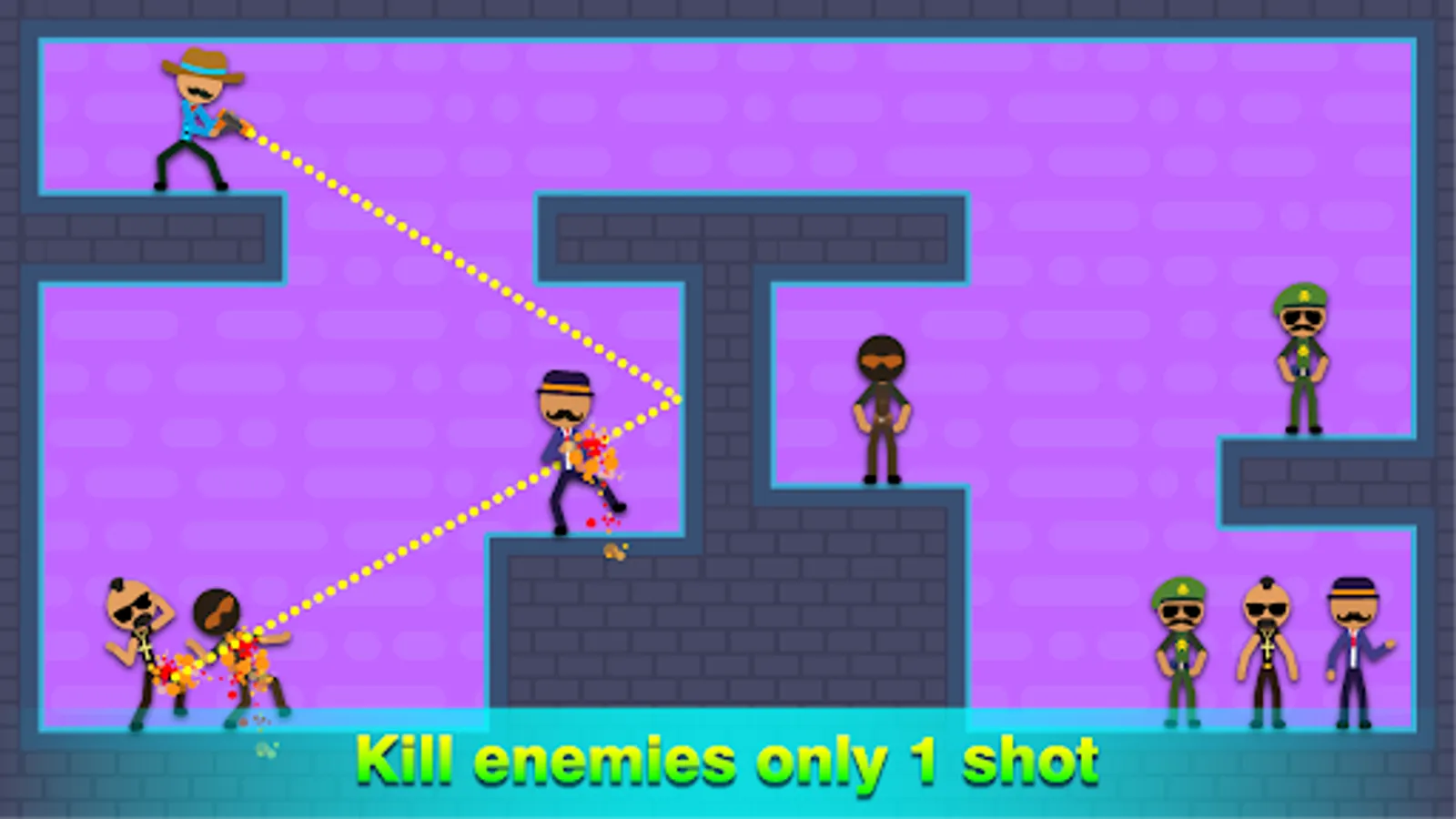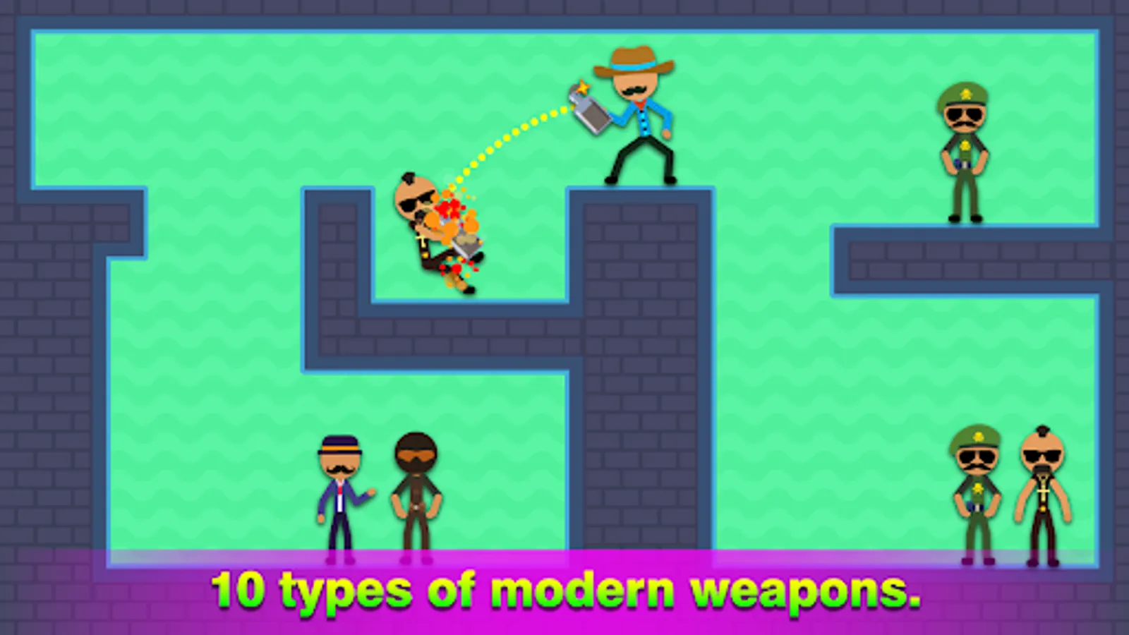 Mr Stickman Hero game is a bullet puzzle game that helps you experience shooting phenomenon. You will need precise aim and laser focus to take down enemies. You have 4 different weapons with outstanding advantages, guns, grenades, lomotov, and tesla. Choose the best and best weapon to kill the enemies, and complete the puzzles..Start your adventure now! The one thing you have to ask yourself is: can you do it in one shot?