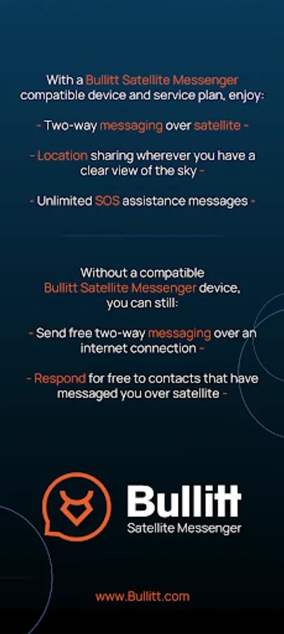 Note: a Bullitt Satellite Messenger account and service plan is required to send or receive messages over satellite.