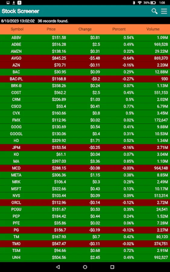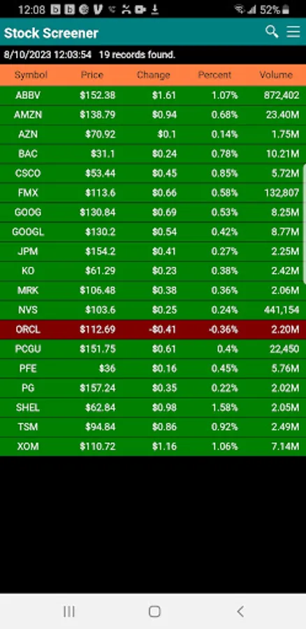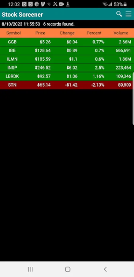 The app currently support over 6,000 stocks, ETFs and ADRs on the US markets. Intraday data for the screening are processed and refreshed every 2 to 3 minutes when markets open.