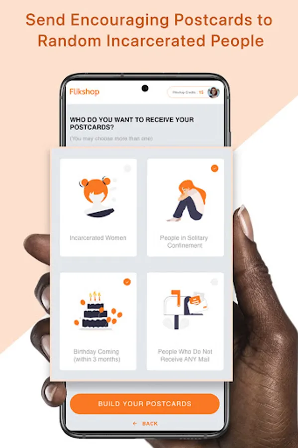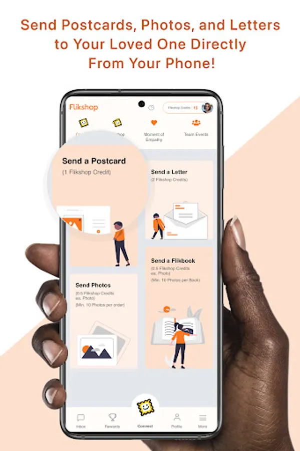 Add your photo, type a message, and click "Send Postcard". Flikshop prints your photos and messages on real postcards and ships them directly to your incarcerated loved one in the mail. Each postcard is shipped within 48 hours on REAL full-color high quality paper...and we pay for postage!