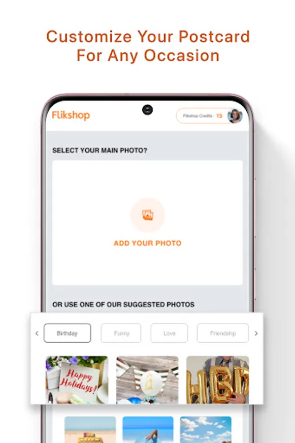 Step 2: Select an optional Profile Pic to add to your Flikshop postcard