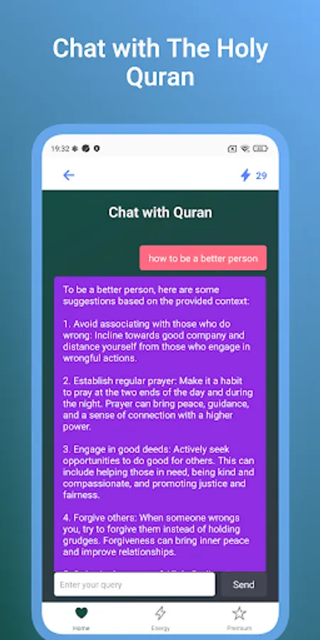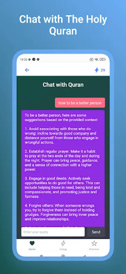 * Chat with Quran: Ever wished to delve deeper into the wisdom of the Quran? Our app allows you to interact directly with the Holy Quran, ask questions, and get instant, context-aware responses. Gain new perspectives, broaden your understanding, and truly imbibe the essence of the Holy Book.