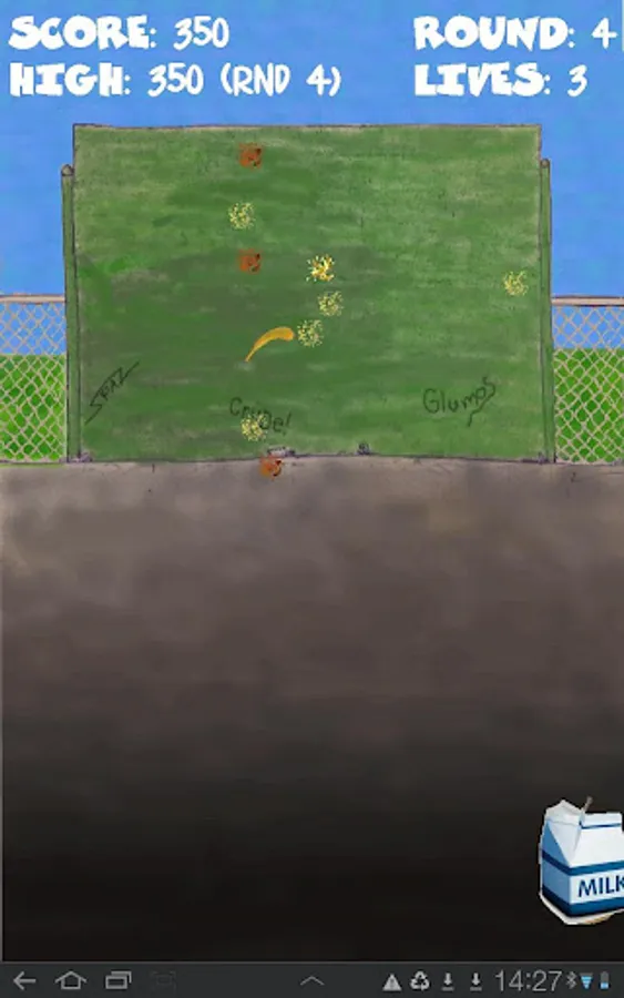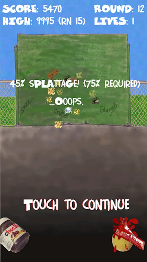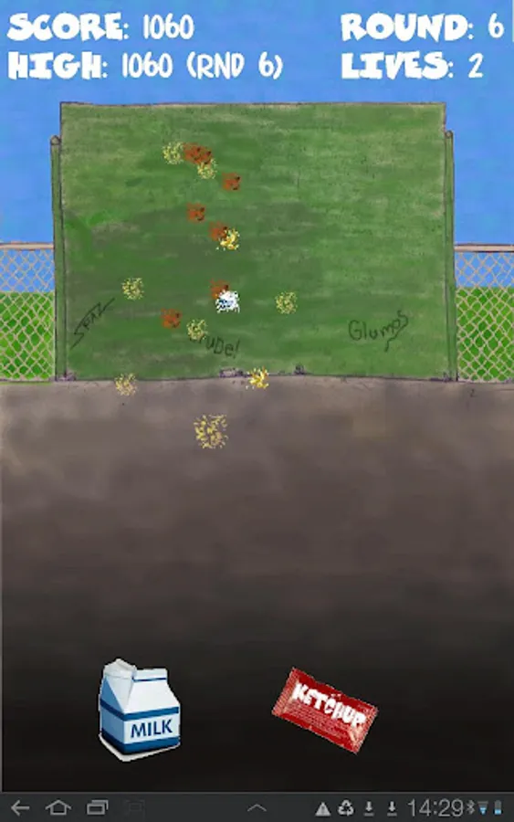 Throw fruit, milk, and other food items at the green wall....watch them splat. Get combos by splatting multiple food items on the same spot. But don't pop the ketchup packets! Nobody likes that!