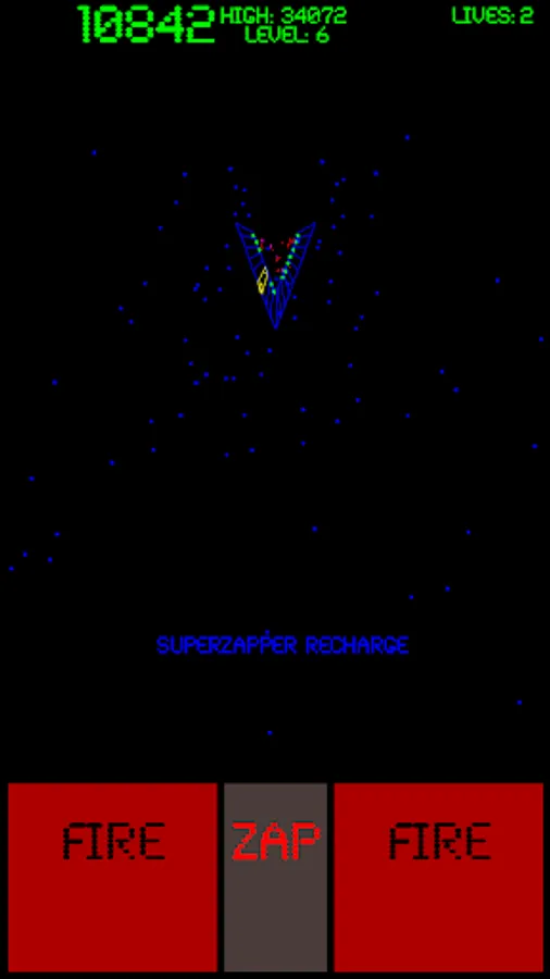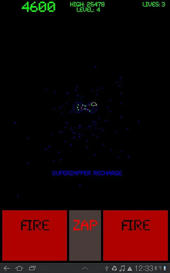 Use the "fire" and "zap" buttons to fire and zap. Move your ship by using a circular touch motion on the game board (like the selection wheel on an iPod)...