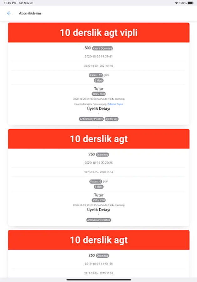 In addition, you can check your shopping, subscriptions, how many days and how many lessons you have left and buy a subscription.