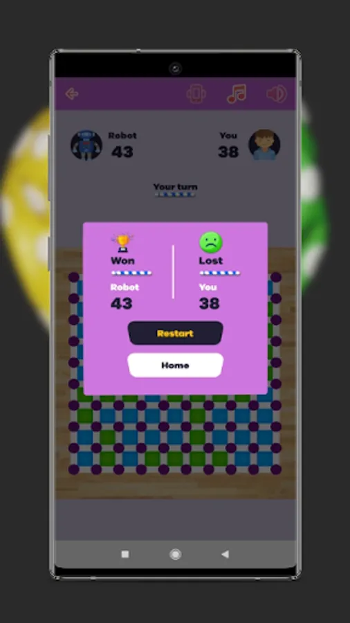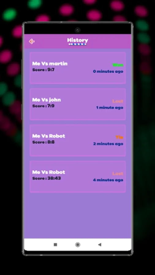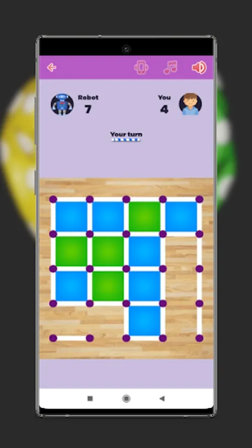 Players can begin a game with a friend or an robot offline. You can select difficulty level(easy,medium,hard) when you play with robot. They can choose the size of the grid. They wish to play, ranging from 4 to 9. After setting the player names, they can join the dots by clicking on them with horizontal or vertical lines. The player who has the most boxes at the end of the game will win the most points. Additionally, players who complete boxes will get an extra turn to play, and their profile will show their name along with the number of games played and points won. Players can also check their history.