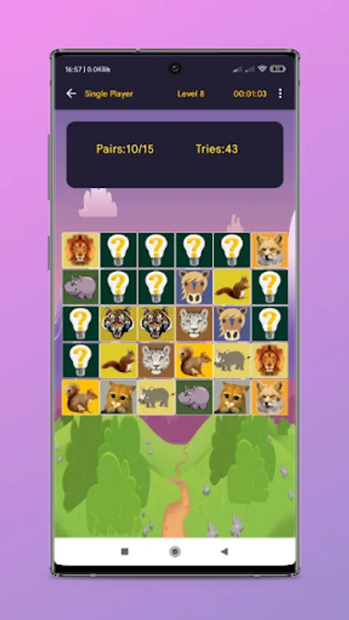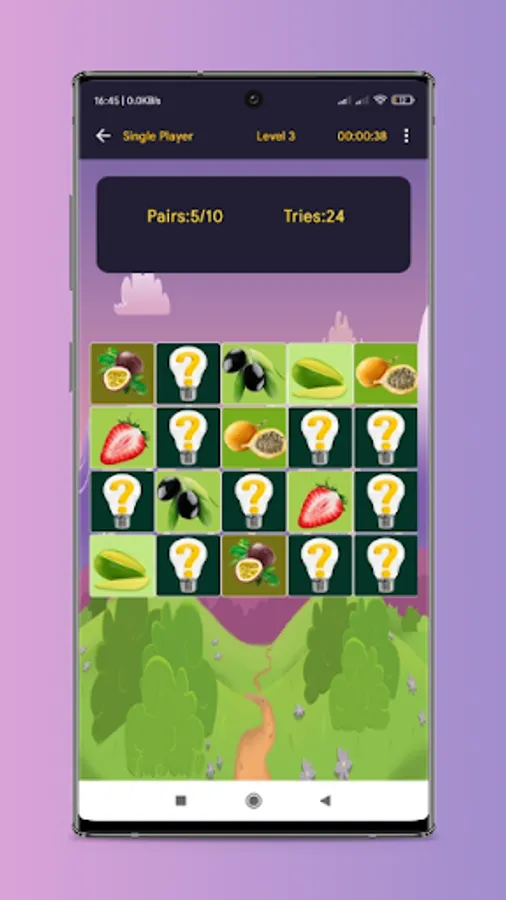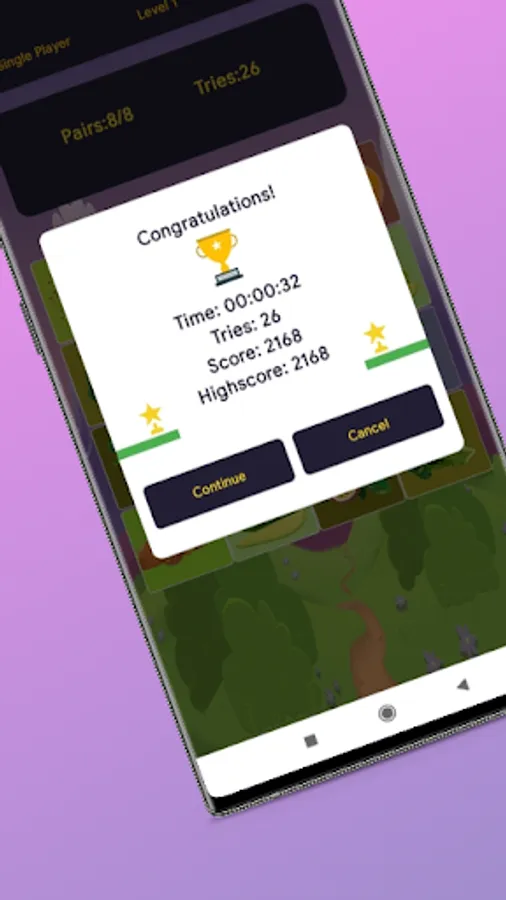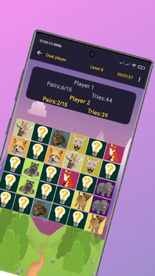 Memo Game is a card game where the objective is to match pairs of cards in a single turn,This application offers two pre-made sets of cards(fruits and animals), along with the ability to choose and use your own images from your device. It not only features a single-player mode but also allows for a dual-player mode.The game consists of 24 levels,and in each level the number of cards increases 2 unit.The game does not ask for any permissions.