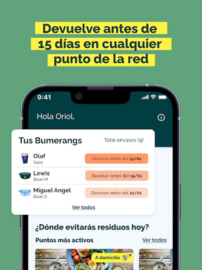 4. Return the Bumerang container within 15 days (After this time we lend it to you by paying a €6 deposit that will be returned to you when the containers are returned).