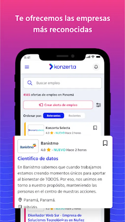 Konzerta is the leading online job and recruitment portal in Panama, belonging to Bumeran, the Latin American leader in internet job postings, with operations in Argentina, Mexico, Venezuela, Peru, Chile, Ecuador and Panama.