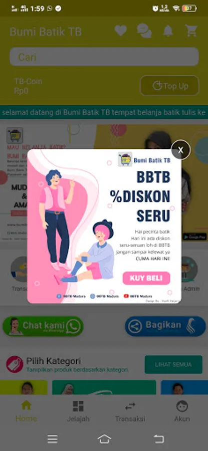 BBTB is an online batik buying site created by HMP HIMADIDAS from STKIP PGRI Bangkalan for the Village Development and Empowerment program from the Ministry of Education and Culture. This application can guarantee the authenticity of batik, that the batik we sell really comes from the village of Paseseh Tanjungbumi. In addition, the price is affordable because it is obtained first hand. Batik in this application is always different every day, even limited edition. Also get shopping vouchers to get various promos at BBTB.