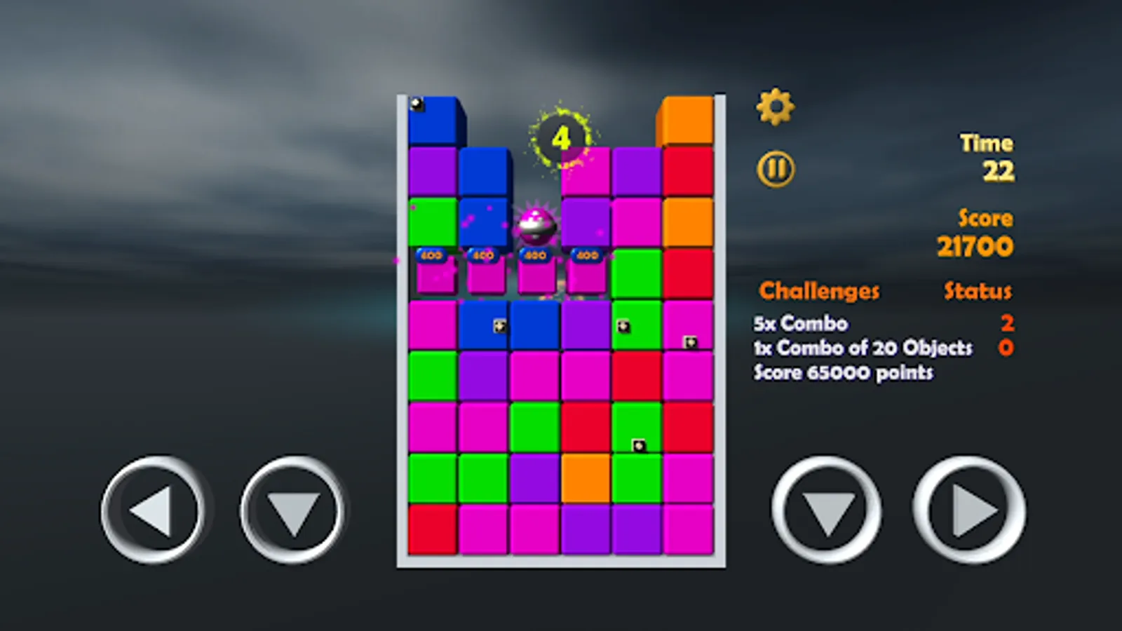 Match shapes of the same color to complete the challenges in each level. Change their color, push them or even remove them using the special objects. Some special challenges will require you to not to match the objects to complete them! Your time is limited, so you will have to be fast.