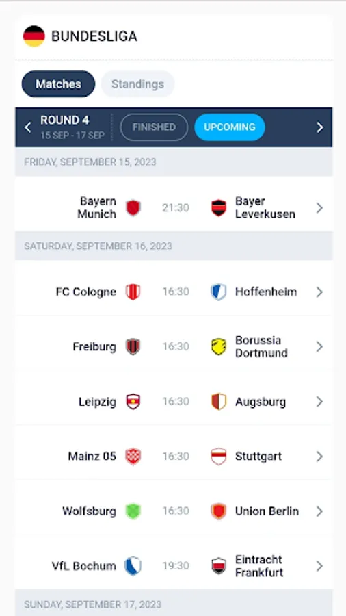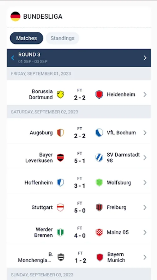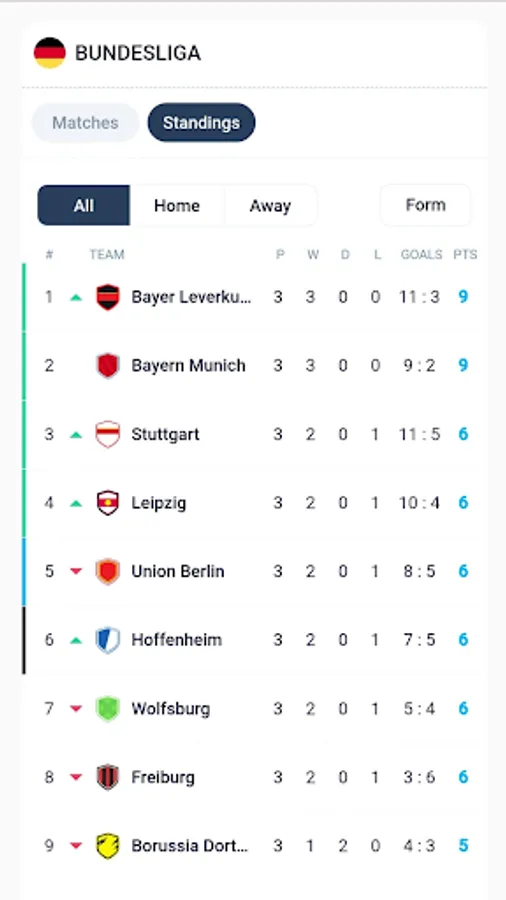 Welcome to Bundesliga MatchTracker, your ultimate app for real-time updates on Bundesliga match results. Immerse yourself in the world of German football and never miss a goal, assist, or thrilling moment in the league. Whether you're a passionate fan or just curious about the teams, our app provides comprehensive coverage, player statistics, and team standings. Stay informed about match outcomes, upcoming fixtures, and match timings using our Bundesliga Schedule Tracker. Experience the excitement of German football with live scores and timely updates. Download now and enjoy the Bundesliga like never before