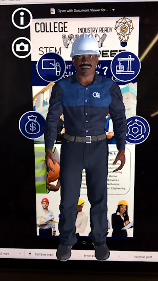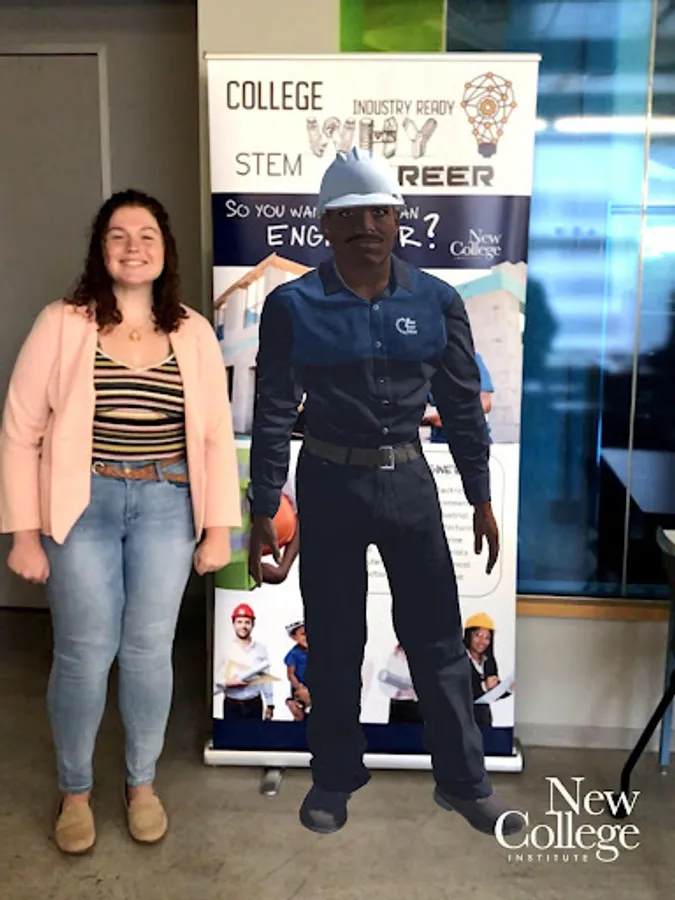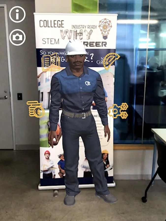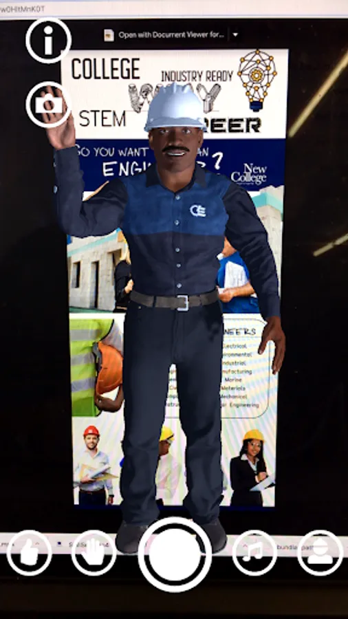 The New College mobile application is an augmented reality (AR) tool that provides students at New College Institute events with the ability to access educational information about different careers. By interacting with the AR guides that appear when the app's camera is pointed at New College Institute Banners, students can learn information about the different career paths. App users can also interact with the AR guide, and use the camera tool to take photos of him to share with friends.