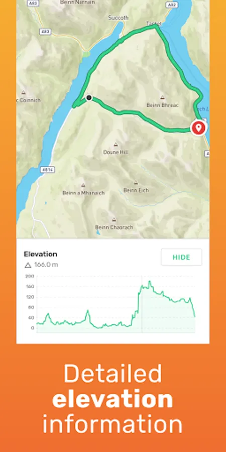 • Elevation gain & elevation loss: How much elevation will this route or lose?