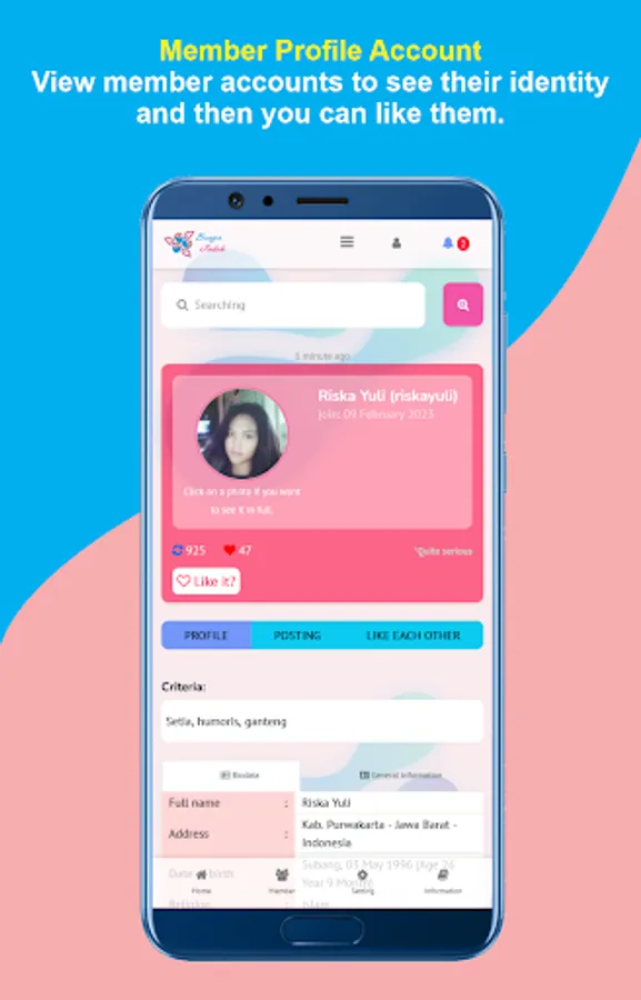 Third, Bunga Jodoh can find the closest match to the same regency or city where we live, so by looking for this closest match, we don't have to bother with long distances to meet.