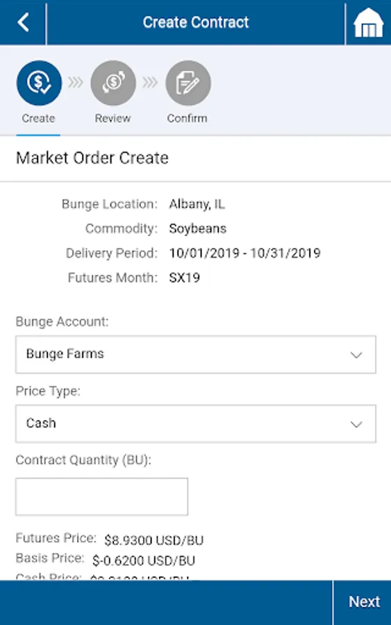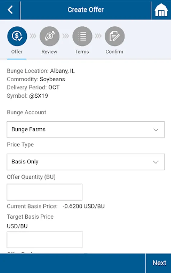 - Create an offer in a few easy steps and let Bunge watch the market for you.
