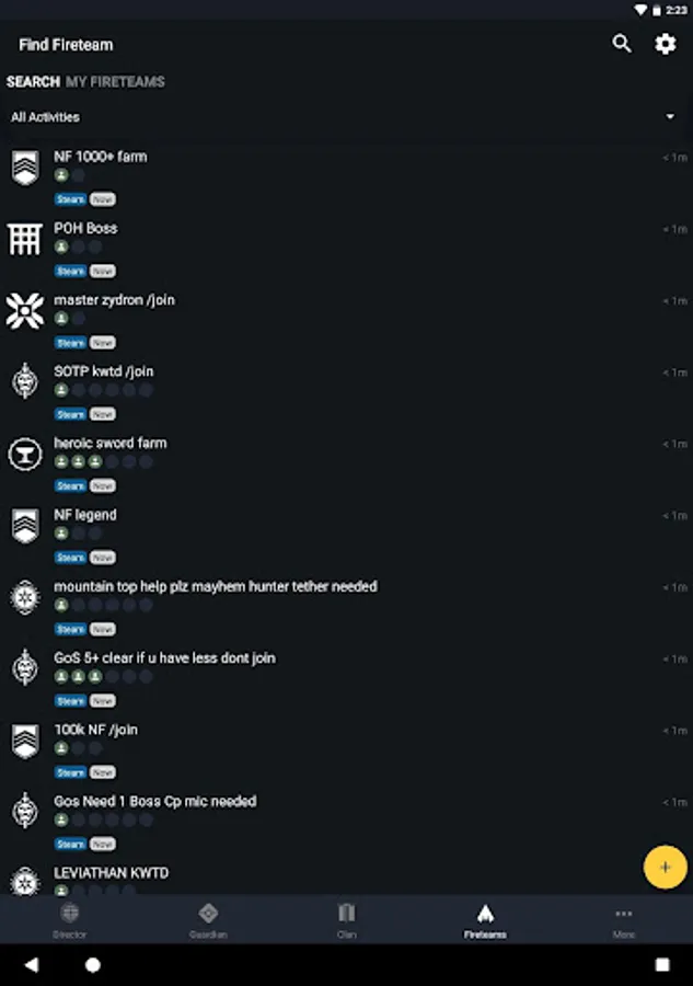 FIRETEAMS - Search and filter fireteams by activity type and find a team to play with now or create your own. The fireteam leader can send invites to quickly get everyone in the fireteam together in game on any platform.