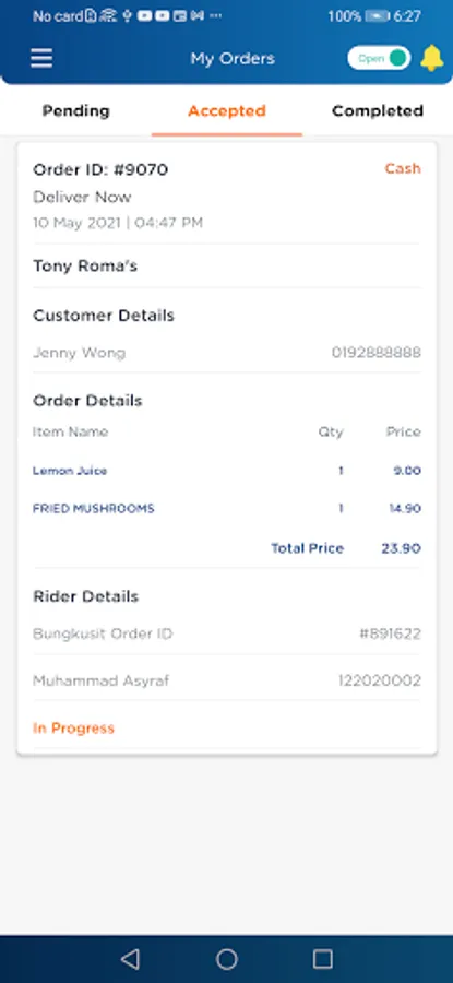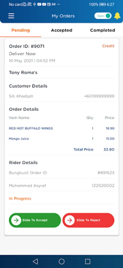 This merchant app is specifically for those who have registered with us and want to start accepting orders through a mobile phone. You may register on our website or merchant.bungkusit.com my first and then only use this app for orders.The Bungkusit marketplace is an easy, convenient location for merchants to sell their products. Coupled with the webapp and various delivery options by Bungkusit, including delivery up to 500 km away, merchants can truly offer a unique digital shopping experience to their customers. Increase sales by having your store’s own mobile app, to view orders from customers. Incoming orders can be quickly and easily accepted or rejected to further improve the customers’ experience.