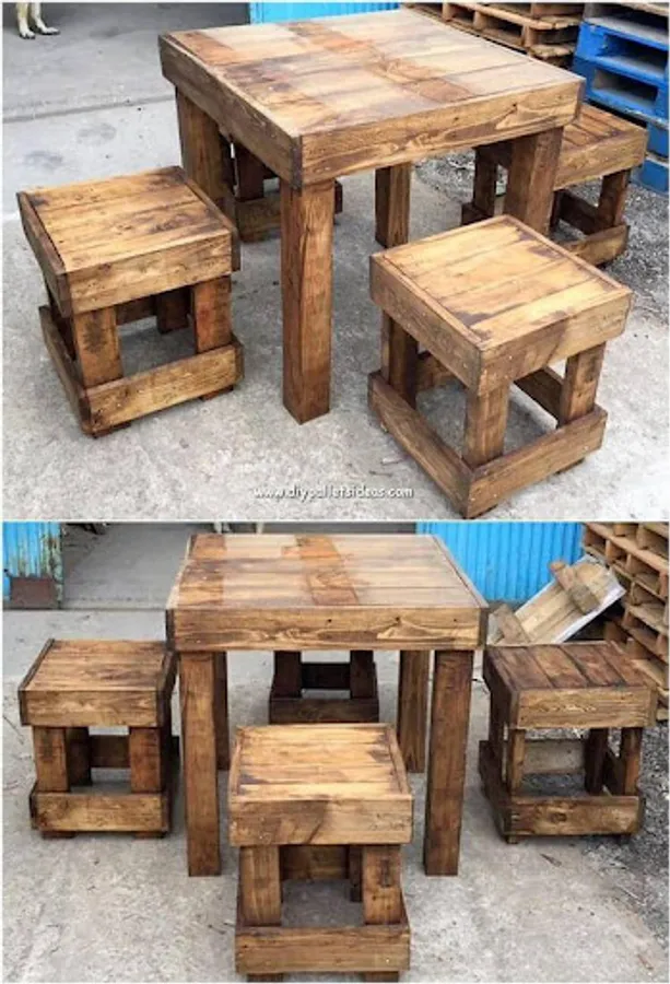 Types of furniture that can be made are pallet tables, pallet chairs and many other types.