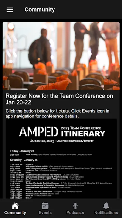 AMPED provides members with the ultimate attendee VIP experience. Access: Event schedules, itinerary, speakers, presentations, resources, podcasts and more.