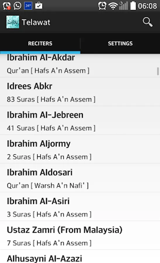 MP3 audio library that can help you to listen to 174 deferent recitations and deferent Rewayat like Hafs Aan Asem, Warsh Aan Nafea' and more.