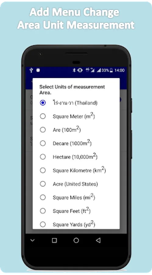 Units of measurement Area.