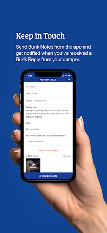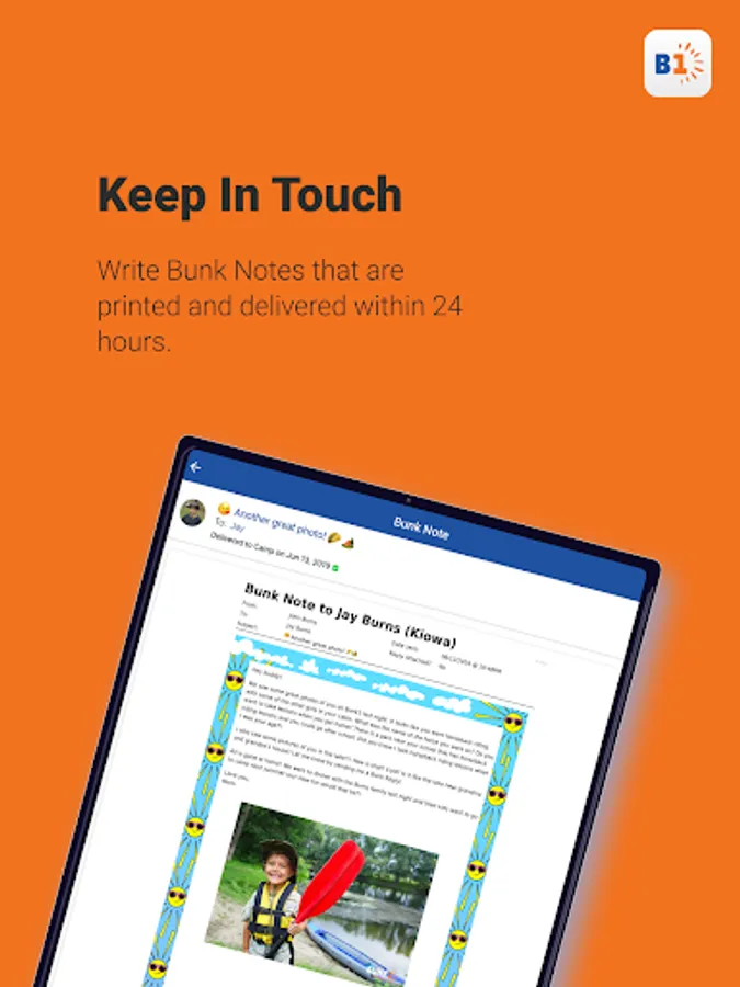 Stay connected with camp with the Bunk1 app! Send Bunk Notes to your camper and read handwritten Bunk Replies your camper sent back. You can see photos uploaded by the camp and get notified whenever photos of your camper are detected. Check in with camp daily with the Updates Feed to see photos, videos and status updates that give you a front-row seat to camp life. You can also opt to receive notifications about your camper delivered instantly to your iPhone! Designed for parents and families to be the first to know what’s happening at camp this summer.