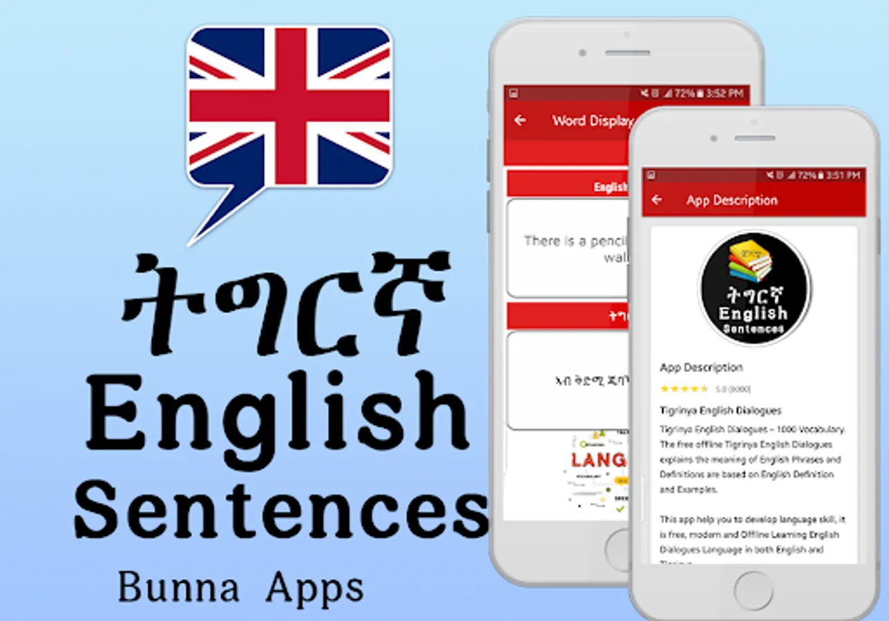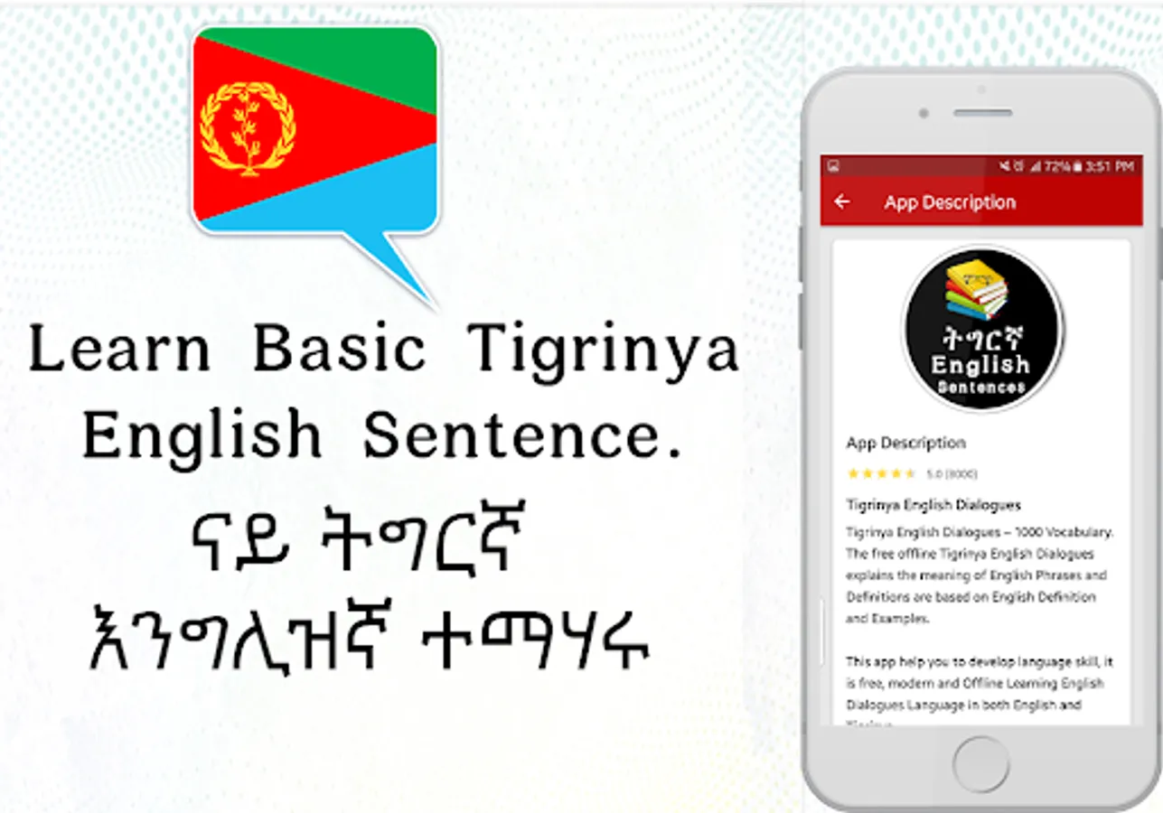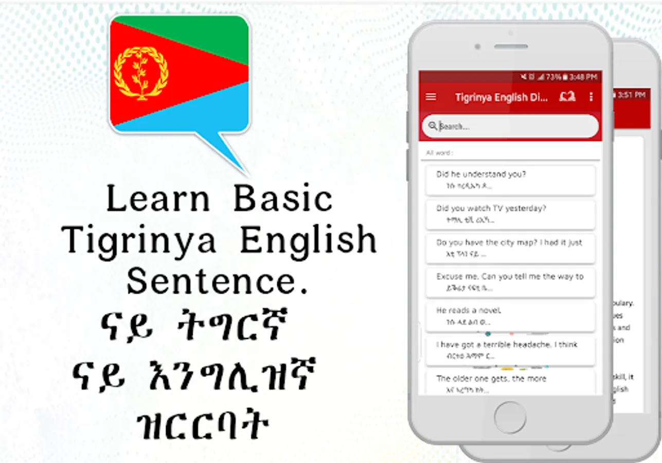 This app help you to develop language skill, it's free, modern and Offline Tigrinya Sentences and Vocabulary in both English and Tigrinya Language.