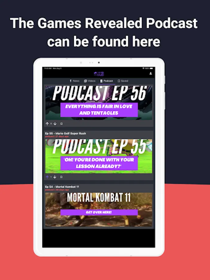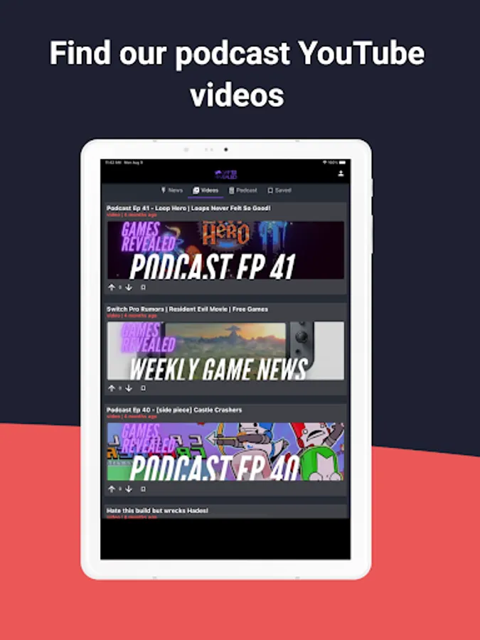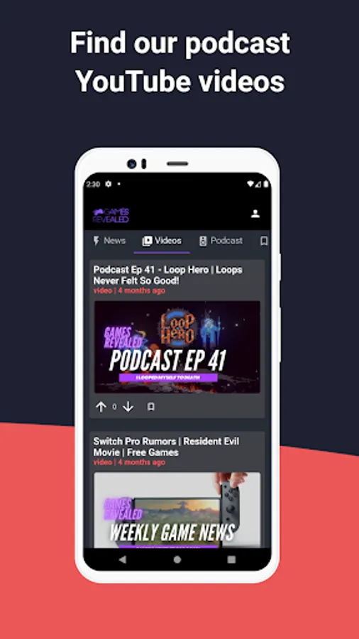 We provide both videos where we record our podcast and other videos related to games. Join us on the app or gamesrevealed.com.