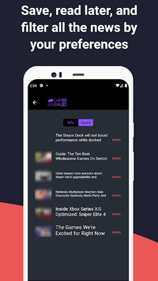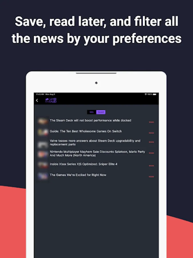You can get all your gaming news from our news section of the app where we curate a list of gaming news articles from famous game news sites, and we throw in a few news items that we find along the way.