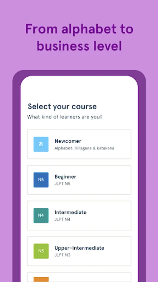 This free Japanese learning app provides grammar explanations and lessons for learners of any levels, from JLPT N5 to JLPT N4, JLPT N3, JLPT N2 and JLPT N1.
