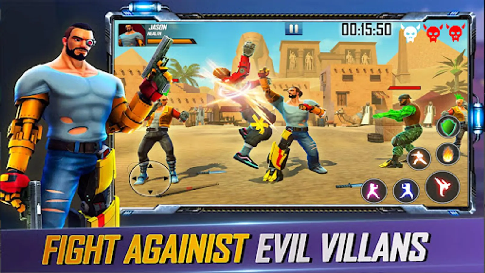 The merger of real robot fighting games with karate games in kung fu fight style will make the game addictive for the karate fighting. Defeating the group of enemies is the real victory in karate fighting games and punching games for free. Walkthrough the street and beat em all the street gang to be like a champion of kung fu fight in fighting games for boys and girls. The lovers of free fighting games who know the use of material arts will enjoy the fighter games for sure. We have provided the variety of environments i.e. Desert, Airport, City and Warehouse for the unending fun of city fighting with gangs unlike other free wrestling games 2020.