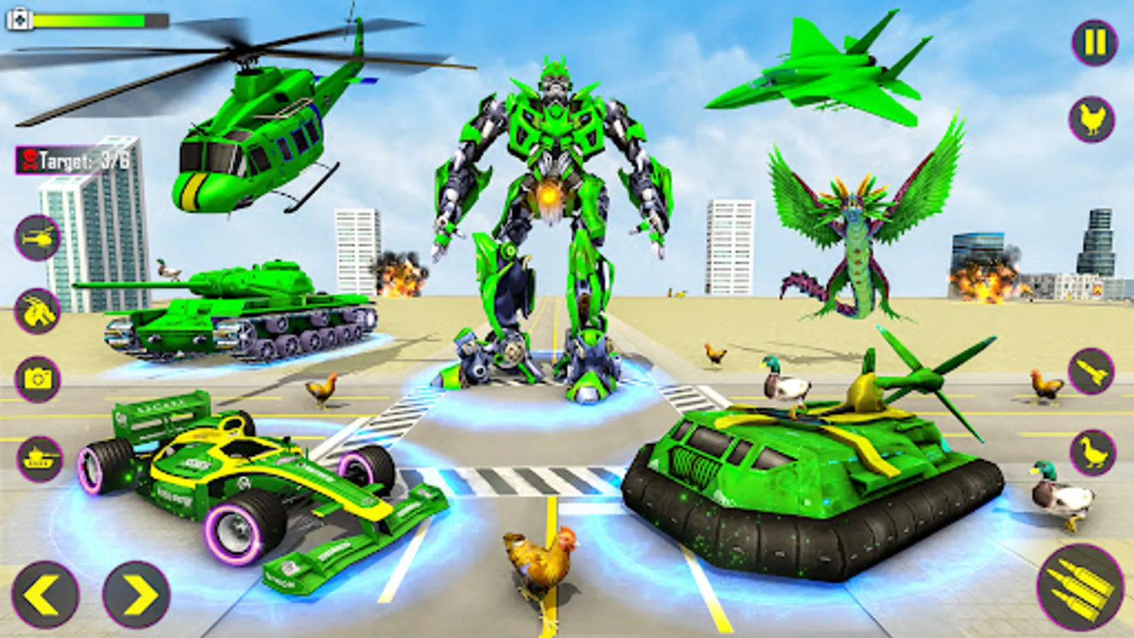 We are presenting the robot car game for futuristic robot wars fans to play in robot transforming game that encloses the real fun of car robot game. You will enjoy flying jet games and robot car games. Robot game contain the engaging storyline in robot wars against multiple futuristic enemy robots within the robot games. All you have to play robot battle as mech robot transforming at robot game to become champion of the robot shooting games. Car robot game in the city of evil robots, you got a unique helicopter robot transforming capability with hover craft, jet, tank, flying dragon & drones to take revenge. So itβs right time for you to participate in endless future robot battle of robot car game where you will enjoy real thrill of robot transformation games merged with robot game. Letβs have fun in one of the best robot game & robot transformation game and enjoy ultimate experience of free robot game.