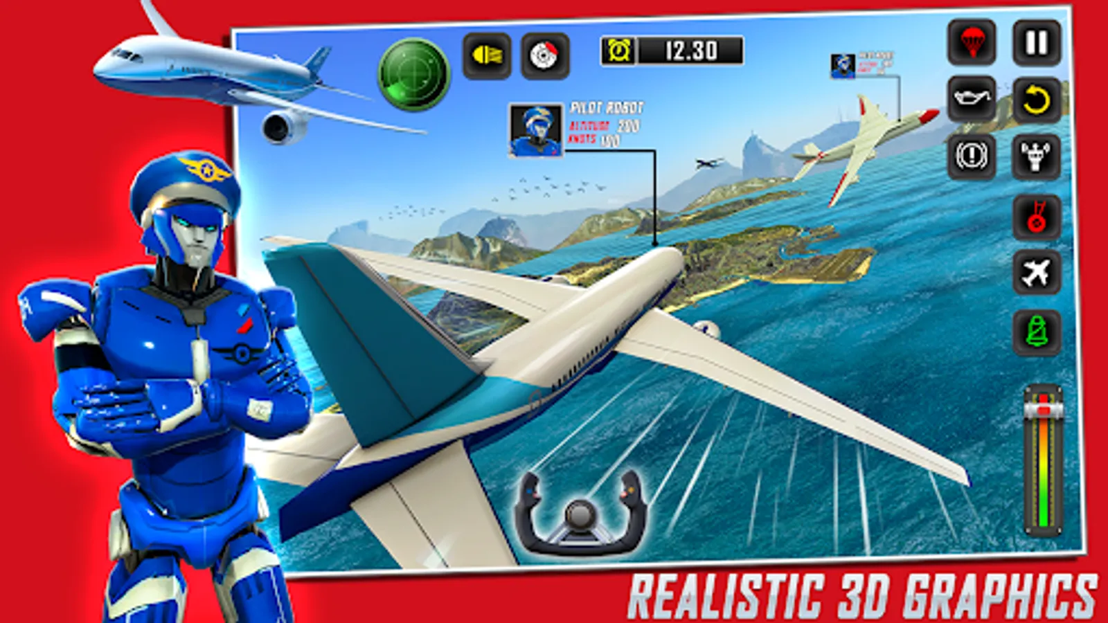 Enjoy airplane games where you will play as pilot robot to get a different experience of plane simulator games. This airplane pilot simulator contains a lot of airplane landing and take-off missions of plane games. Real plane pilot games will let you feel the life of pilot by giving the flavor of pilot robot games. Do you want to become the expert pilot of aeroplane games in plane flying games? Complete the challenging missions of plane flight simulator and prove plane flying expertise in pilot simulator games that comes with a unique of pilot robot game. So, be ready to act as pilot robot and enjoy take-off and landing tasks in plane flight games. If you have the passion of flying airplane, here you will give a chance to fly through the realistic environments of city, oceans in this aeroplane game. Your flight is ready to take off, choose a plane and take controls to fly real airplanes.