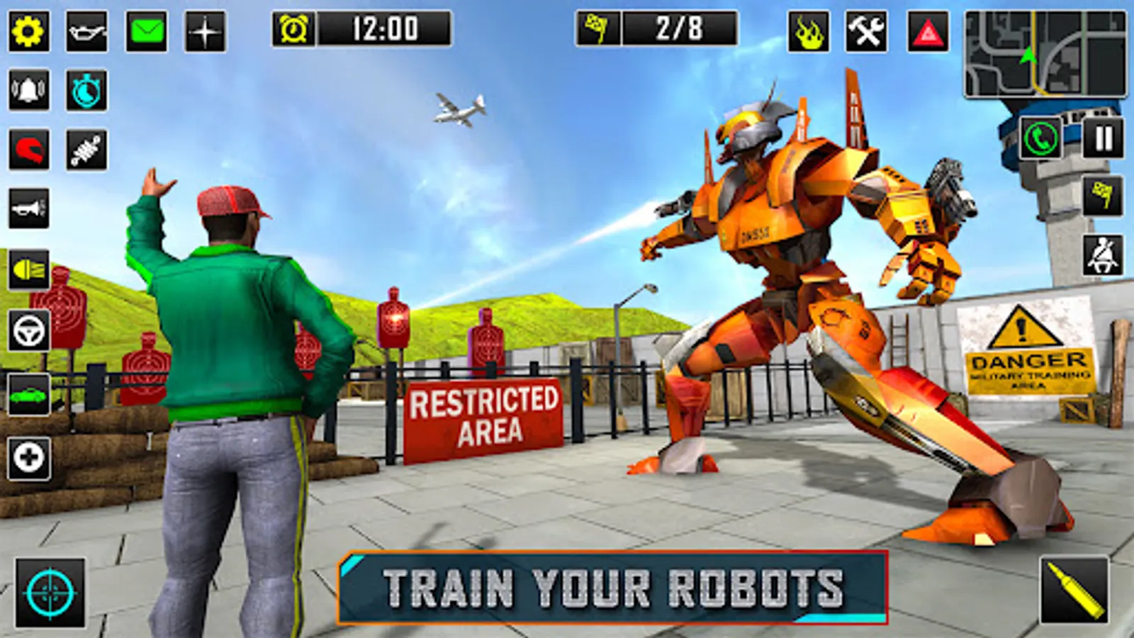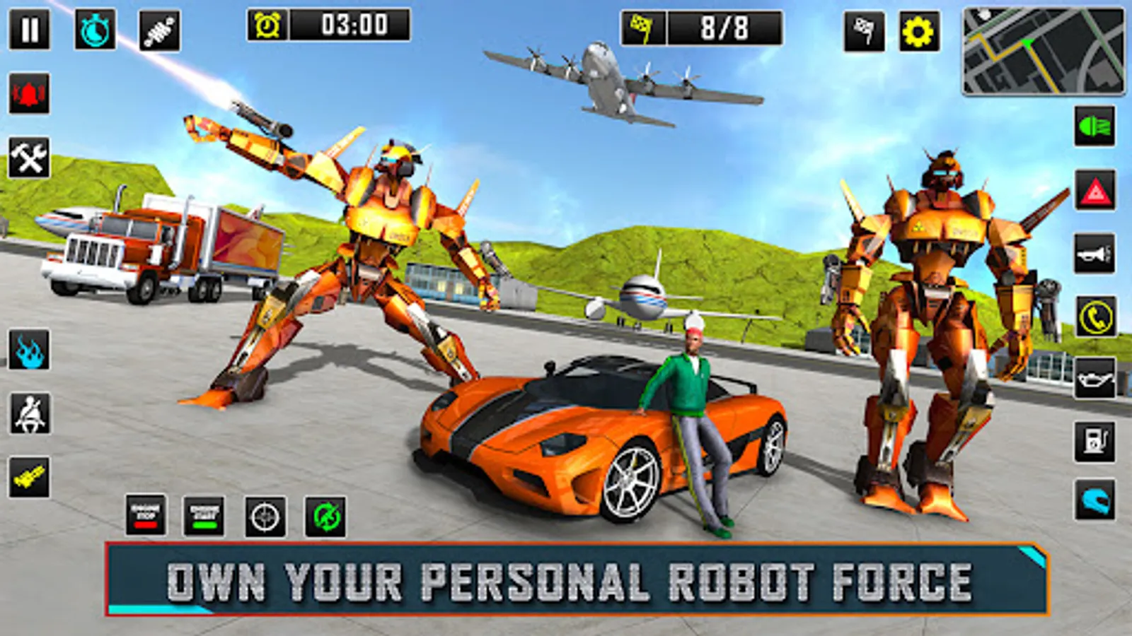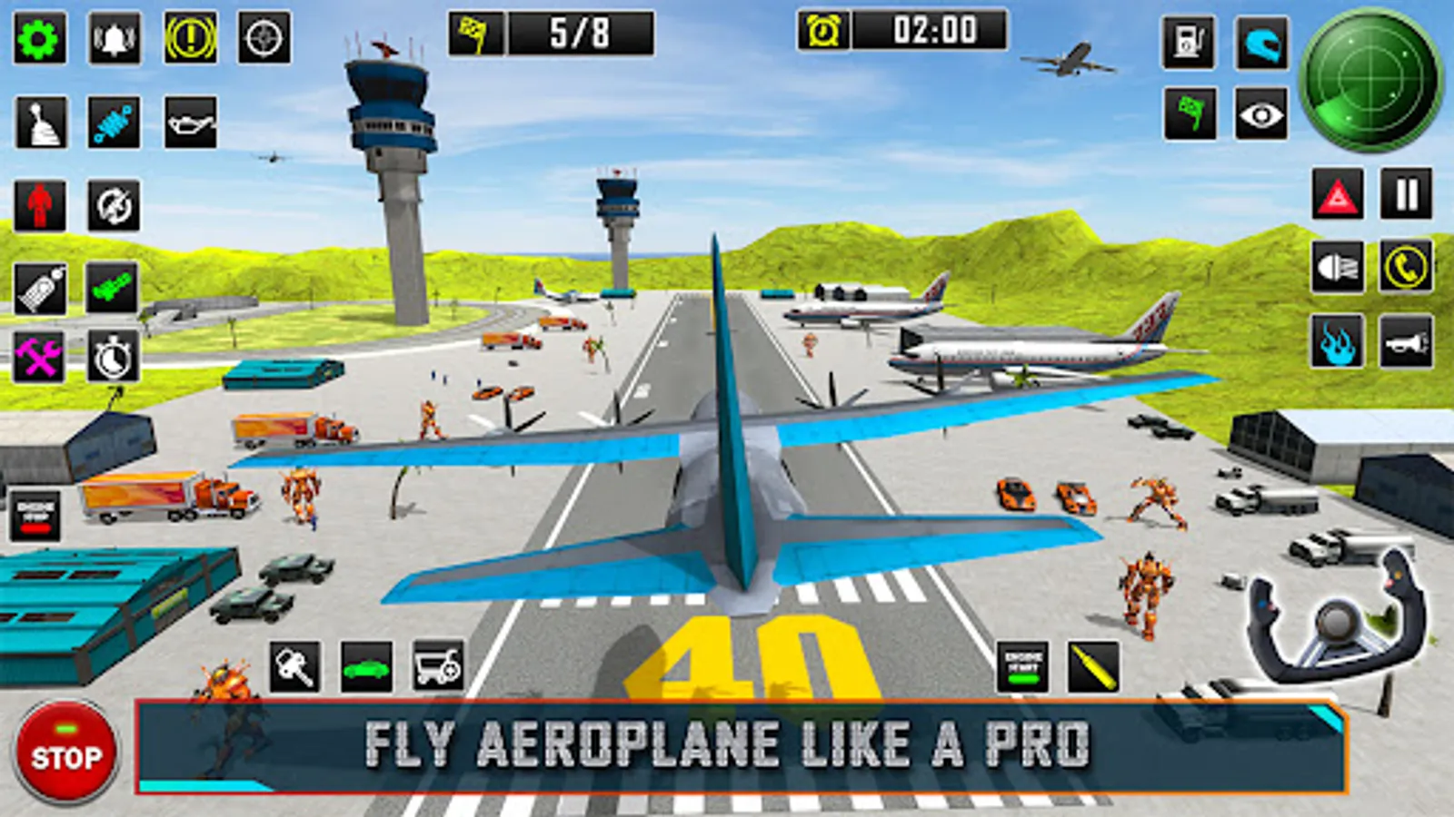 Act as a war robot plane pilot and fly the airplane ✈️ to Miami where car transforming robots are trained for robot wars in robot shooting games. Carry out the Robot transformation of all the cars in transforming robot car games to train them one by one. Bring them back and put them into free airplane transporter - robot transform games.