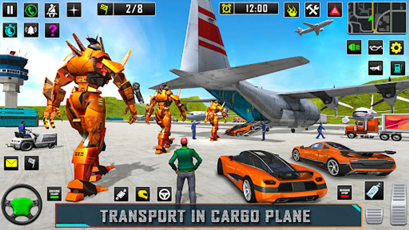 Become best airplane pilot in war robot car transporter games - robot war games. Plot of the game is the robot car transporter plane games, where future robots are transported to secret place for robot fighting training in multi robot transformations free plane transporter games. Transform car in to crocodile robot, dino robot, flying car robot, train robot and truck robot wala game. Accept airplane flight pilot duty of war robot plane transporter and transport real robot cars to secret Miami island and train them for futuristic robot shooting in extreme car driving school 3d airplane transport games. If you have ever played kar game in multi animal robots games then you should be well aware of the hathi wala game, lion robot and shark robot as shark races game in this janwar wala game. Enjoy blaze transformations vehicle games in robot war simulator war transforming animal wala game.