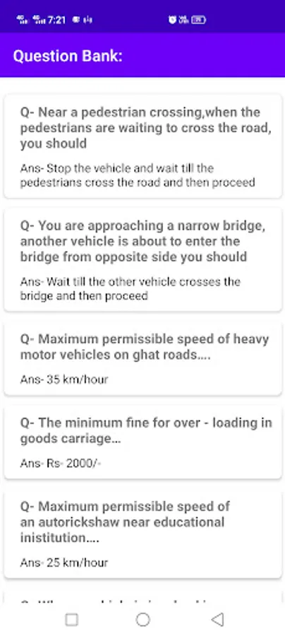 Once open the practice page in this RTO Quiz, RTO GK application you can learn more and more question and answer for your Rto exam.