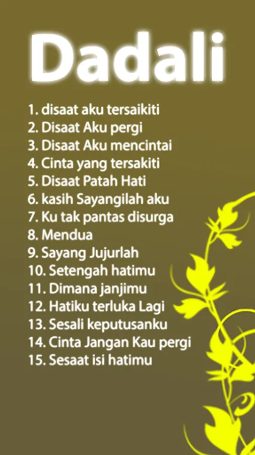 A complete collection of Indonesian pop dadali offline with lyrics, a collection of clear and melodious voice dadali when I go is enjoyable.