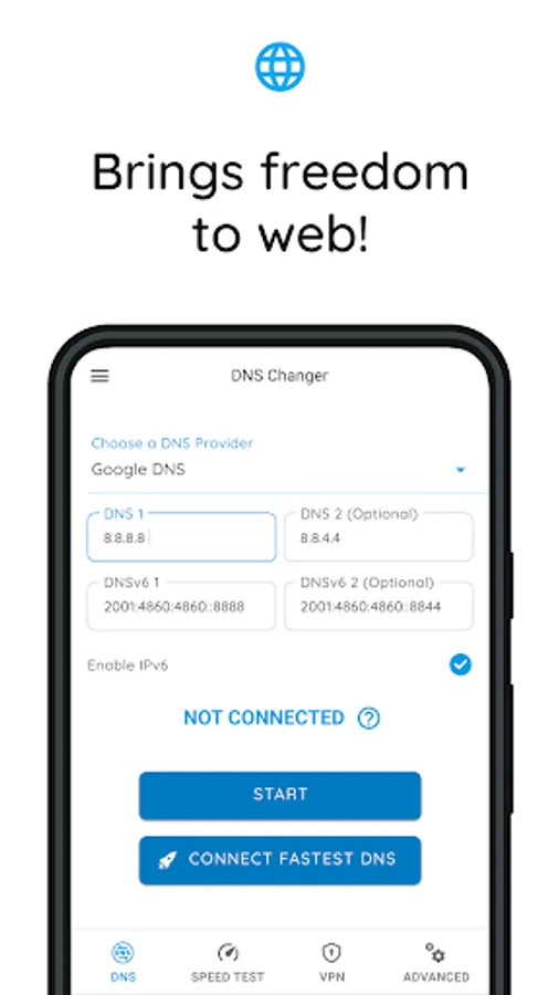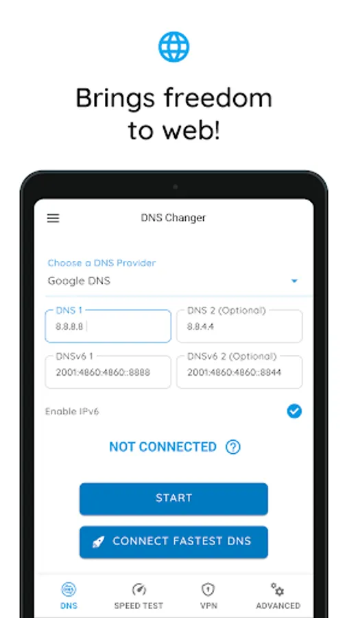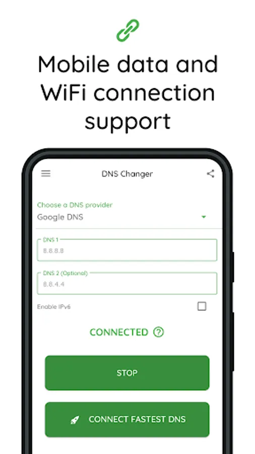 With DNS Changer, you can find the fastest DNS server and connect to it with just one touch!