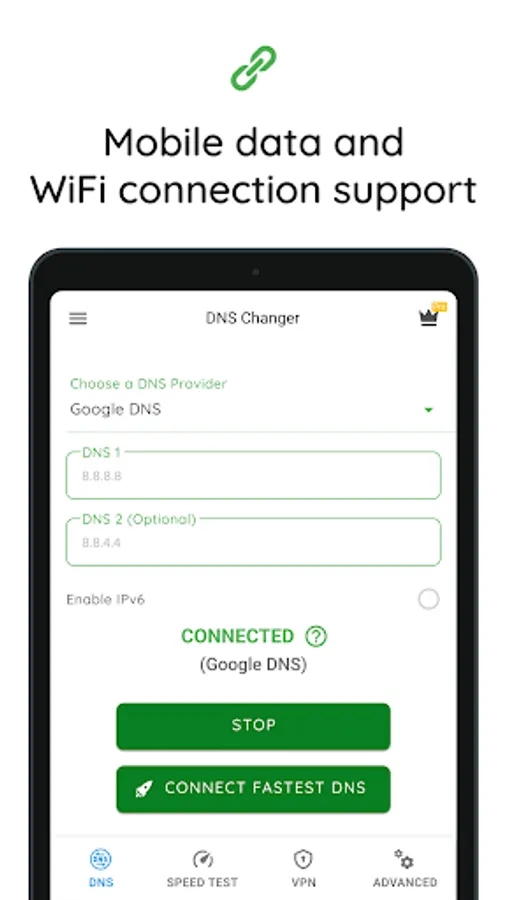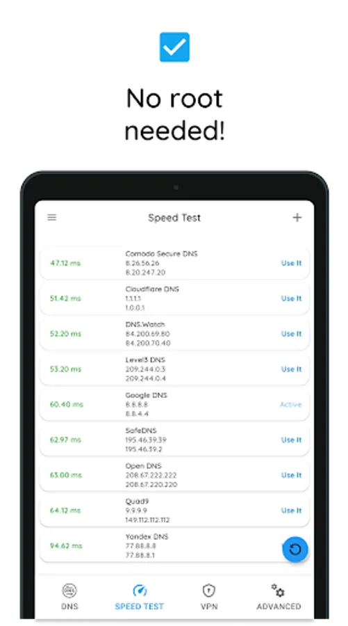 Improve your network connection with DNS Speed Test. Find fastest DNS server and connect it with a single touch.