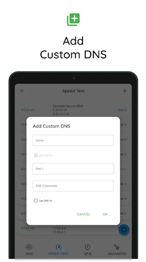 ► DNS Speed Test feature: Find the fastest DNS server for your connection.