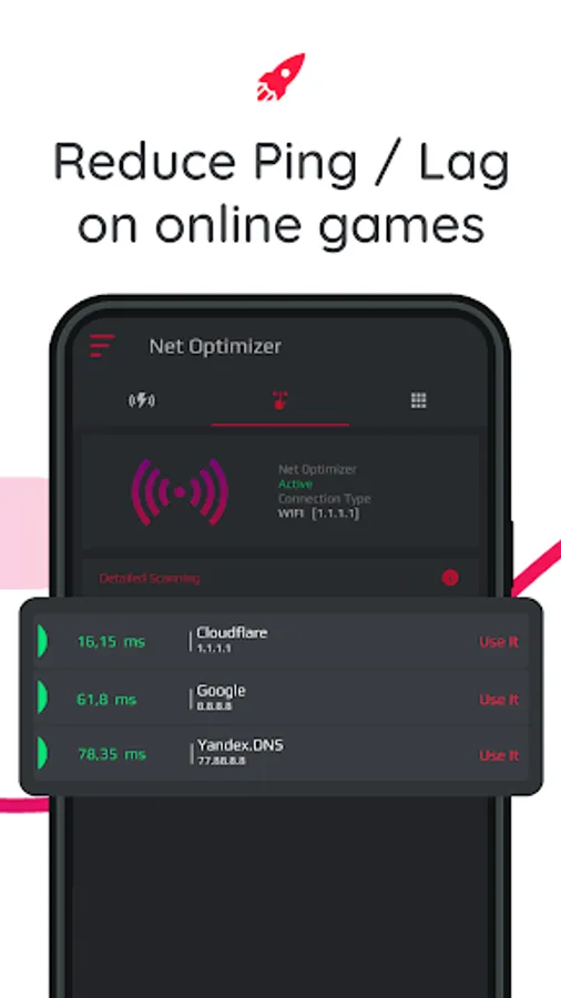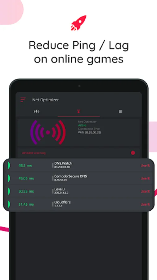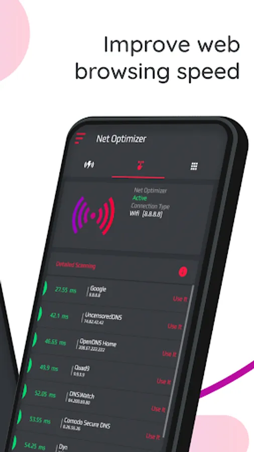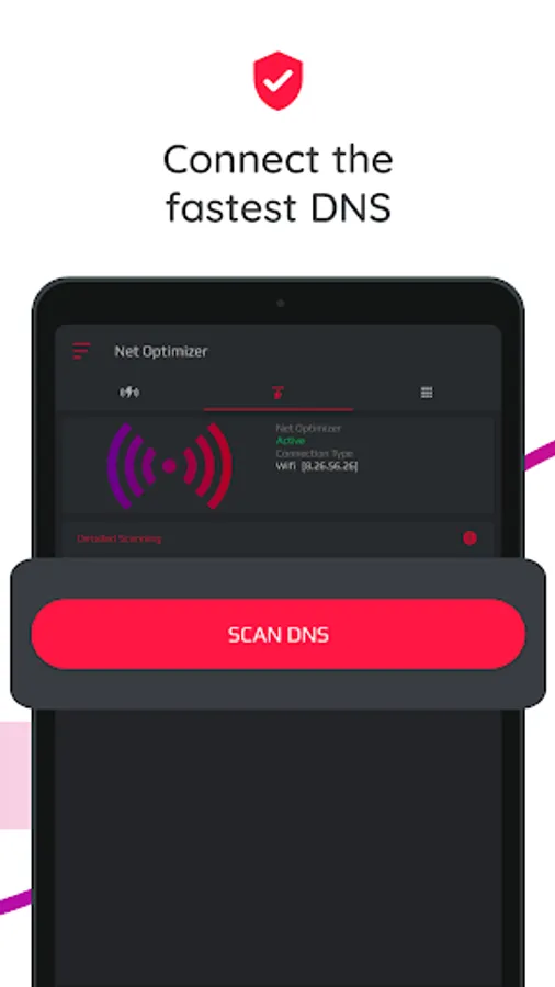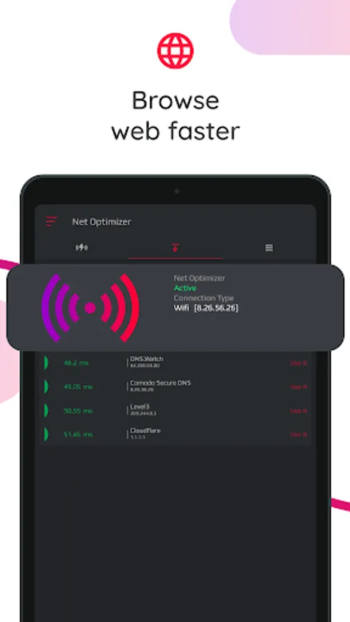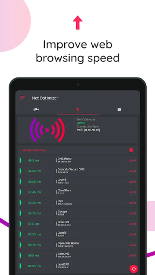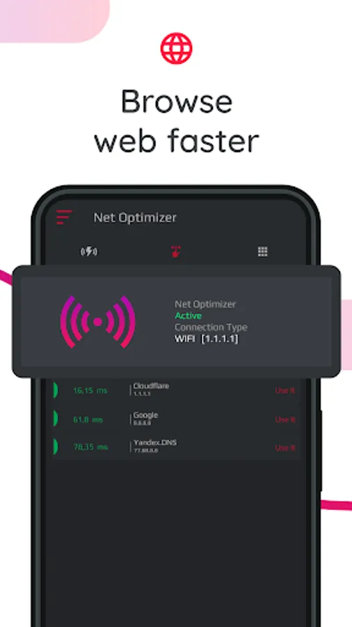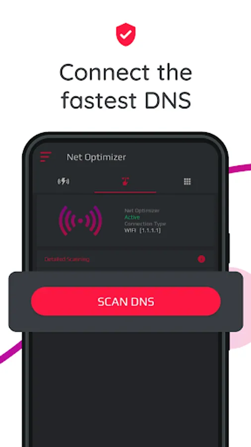 -Just one touch to find & connect fastest DNS server to optimize your connection.