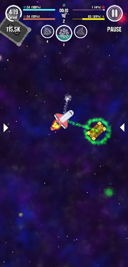 The game is about a spaceship and its path through the universe. After the crash of a space station, by coincidence, all staff have left the station and are now surviving in outer space. The gamer is to save them all. Picking up astronauts, earning points, fighting anomalies - this is Buran’s-19 mission.
