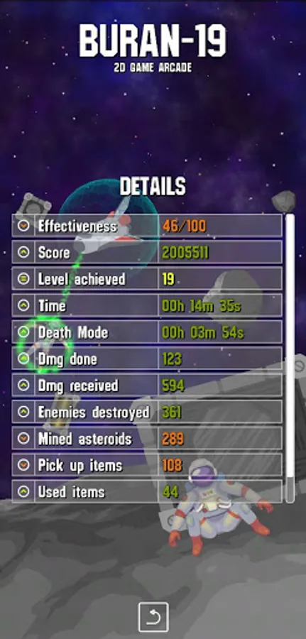 Buran-19 is an arcade game - a casual game in which a spacecraft (Buran-19) collects astronauts. The main goal is to survive the attacks of anomalies, pick up the loot, and use it.