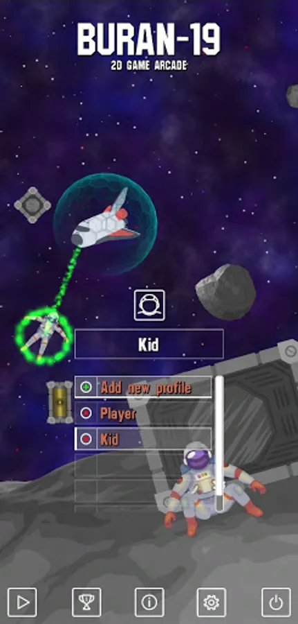 The game is about a spaceship and its path through the universe. After the crash of a space station, by coincidence, all staff have left the station and are now surviving in outer space. The gamer is to save them all. Picking up astronauts, earning points, fighting anomalies - this is Buran’s-19 mission.