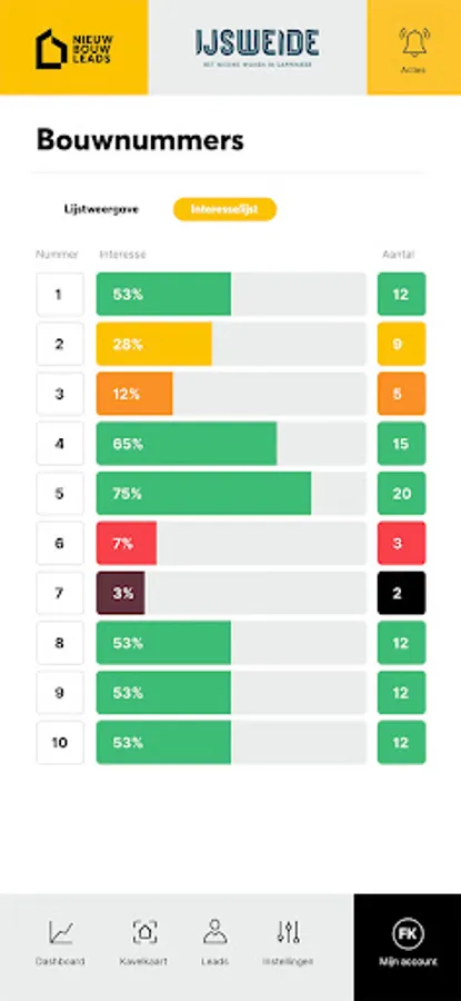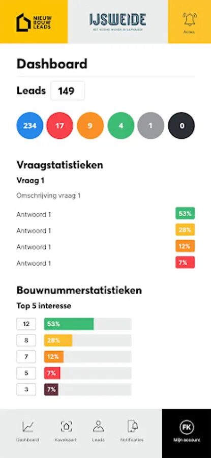 With NieuwbouwLeads you have full control over the sale of all your new construction projects in one simple and user-friendly system. NieuwbouwLeads gives you 24/7 insight into the housing requirements and customer information of your leads, optants and buyers of your new construction projects.